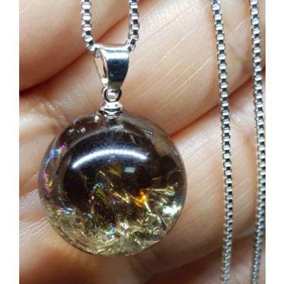 **아프리카 마다가스카르 산 무지개 연수정 19mm 구슬형 펜던트 실버체인 목걸이입니다.