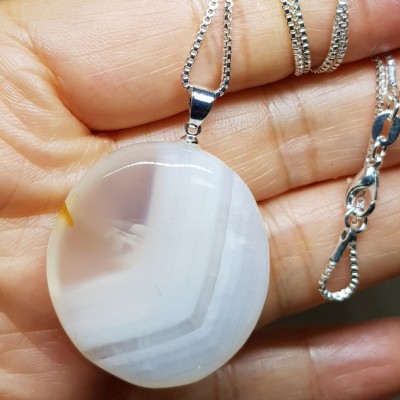 **아프리카 마다가스카르 산 화이트 밴딩 아게이트 펜던트 실버 체인( 45cm)dlqslek.