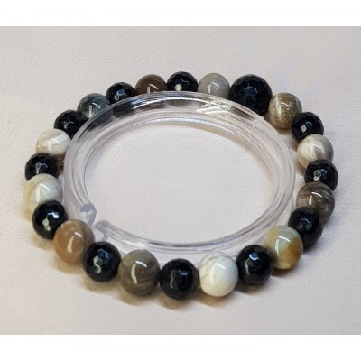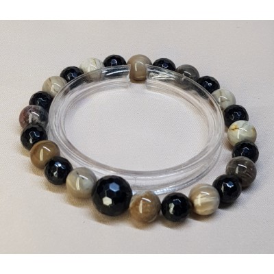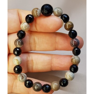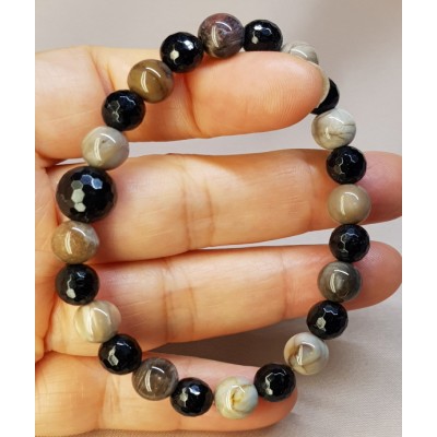**아프리카 마다가스카르 산 나무화석(규화목) 과 블랙투어머린 컷팅 라운드형 8mm 팔찌입니다.