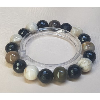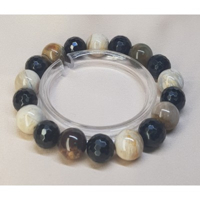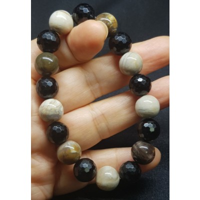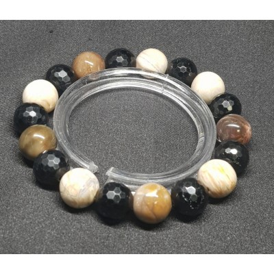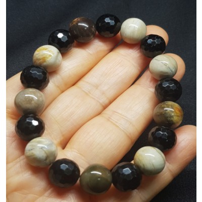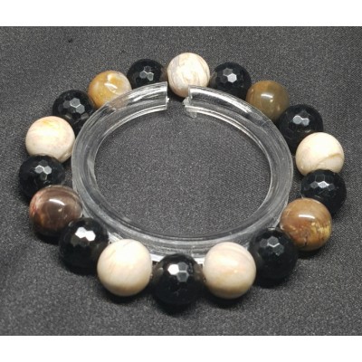 **아프리카 마다가스카르 산 규화목(나무화석) 11mm 라운드형과 투어머린 10mm 라운드 컷으로 만든 팔찌입니다.