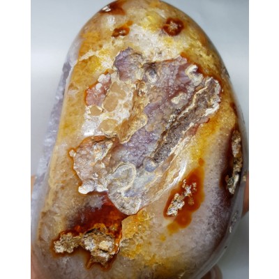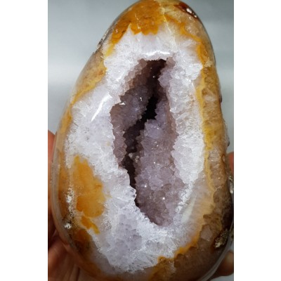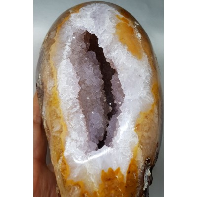 **아프리카 마다가스카르 산 파이어 아게이트처럼 보이는 자수정 지오드 계란형(타조알 크기정도임) 아름다운 지오드 입니다.