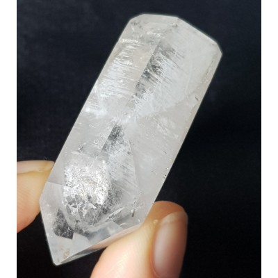 실제 수정은 얼음처럼 투명한 모습에 화이트 팬텀이 형성된 희귀 수정입니다.
