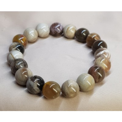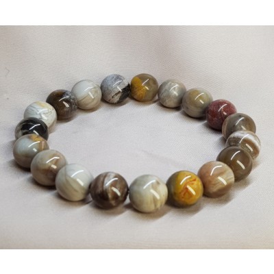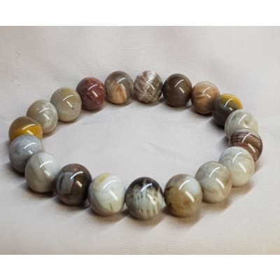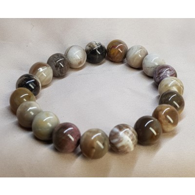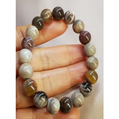 **아프리카 마다가스카르 산 광택과 색감이 뛰어난 나무화석10mm 팔찌입니다.