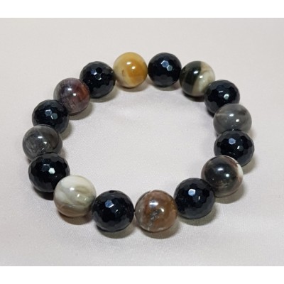 **아프리카 마다가스카르 산 규화목 라운드 컷 형 12mm와 투어머린 10mm 라운드 컷으로 만든 팔찌입니다.