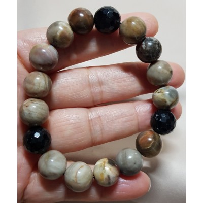 **아프리카 마다가스카르 산 규화목(나무 화석)수정과 투어머린 라운드 컷으로 만든 12mm 팔찌 입니다.