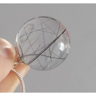 투르말리네이티드는 완전투명 백수정 수정 16.5mm 구슬에 투어머린 침이 형성 된