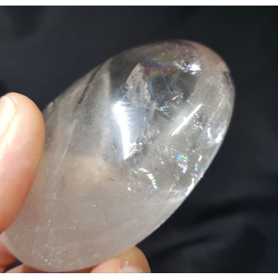 수정안에서 형성 된 크랙이 멋있고 아름다우며 무지개가 형성된 기운 좋은 약한 색 황수정입니다.