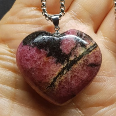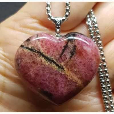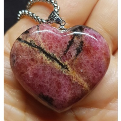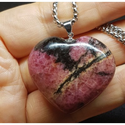 **아프리카 마다가스카르 산 색감 좋은 로도나이트 하트형 펜던트입니다.