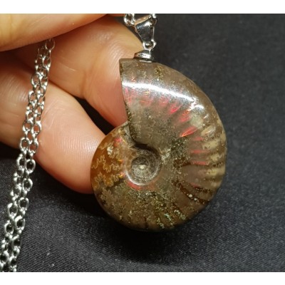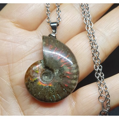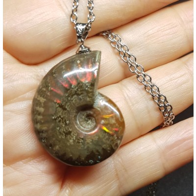 **아프리카 마다가스카르 산 파이어 오팔 암몰라이트 화석 펜던트입니다.