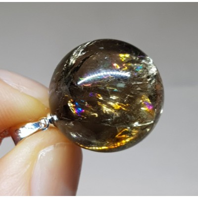 **아프리카 마다가스카르 산 무지개 연수정 19mm 구슬형 펜던트 실버체인 목걸이입니다.