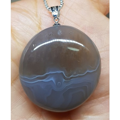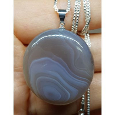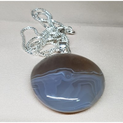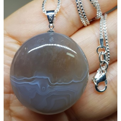 **아프리카 마다가스카르 산 블루레이스 아게이트 45cm 실버 체인 목걸이입니다.