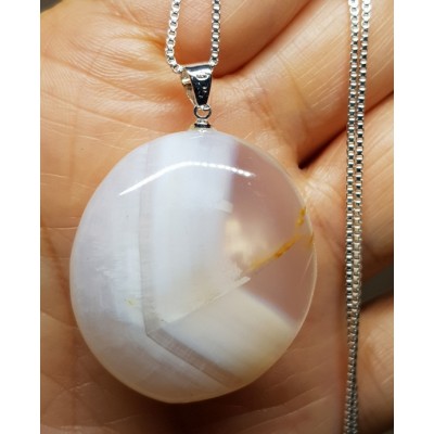 **아프리카 마다가스카르 산 화이트 밴딩 아게이트 펜던트 실버 체인( 45cm)dlqslek.