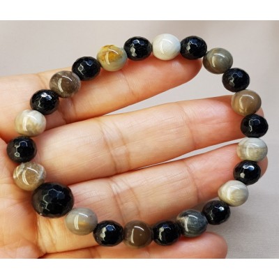 **아프리카 마다가스카르 산 나무화석(규화목) 과 블랙투어머린 컷팅 라운드형 8mm 팔찌입니다.