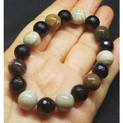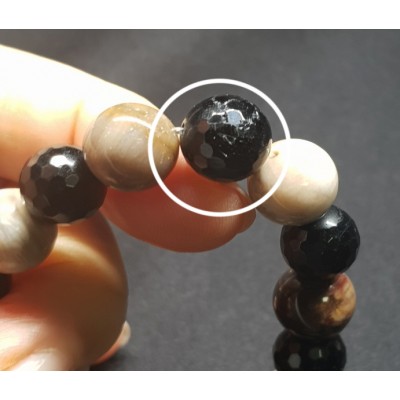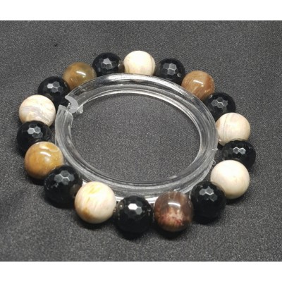 **아프리카 마다가스카르 산 규화목(나무화석) 11mm 라운드형과 투어머린 10mm 라운드 컷으로 만든 팔찌입니다.