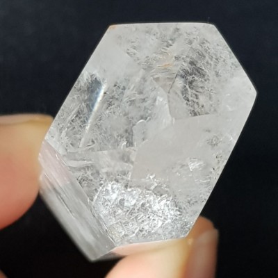 실제 수정은 얼음처럼 투명한 모습에 화이트 팬텀이 형성된 희귀 수정입니다.